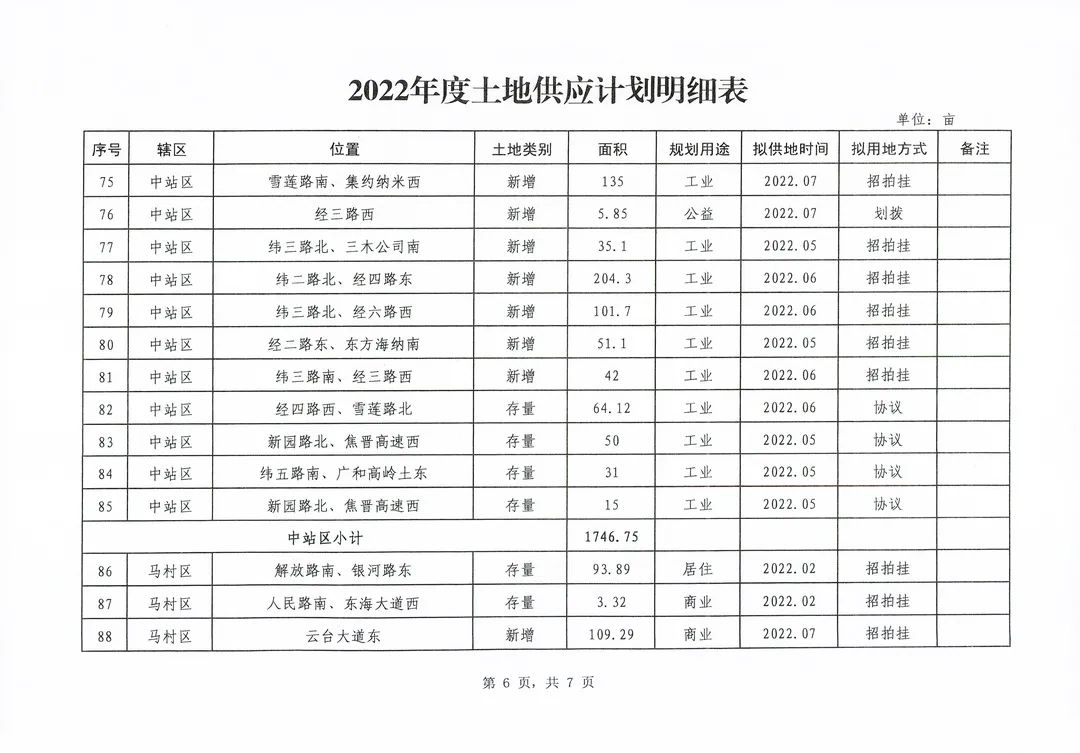 中站區(qū)22宗共計1746.75畝